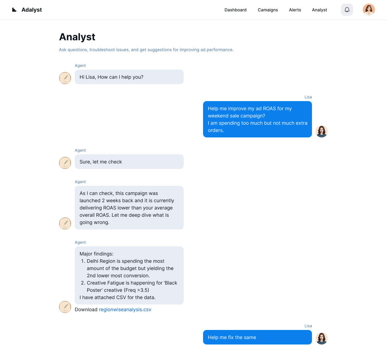 Adalyst is fine-tuned on real ad performance data across platforms. It understands the nuances of ad spend, ROAS, CTR drops and platform-specific best practices.Adalyst doesn't just generate ideas — it analyzes patterns, detects issues, and recommends actionable fixes based on what actually moves the needle.
