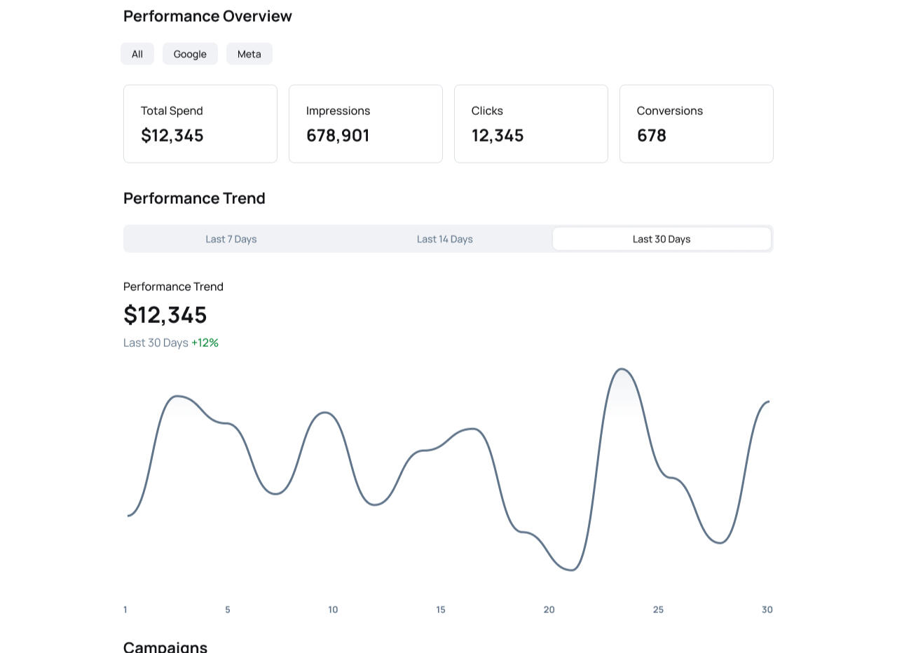 See performance across Meta, Google, TikTok & more — all in one place.